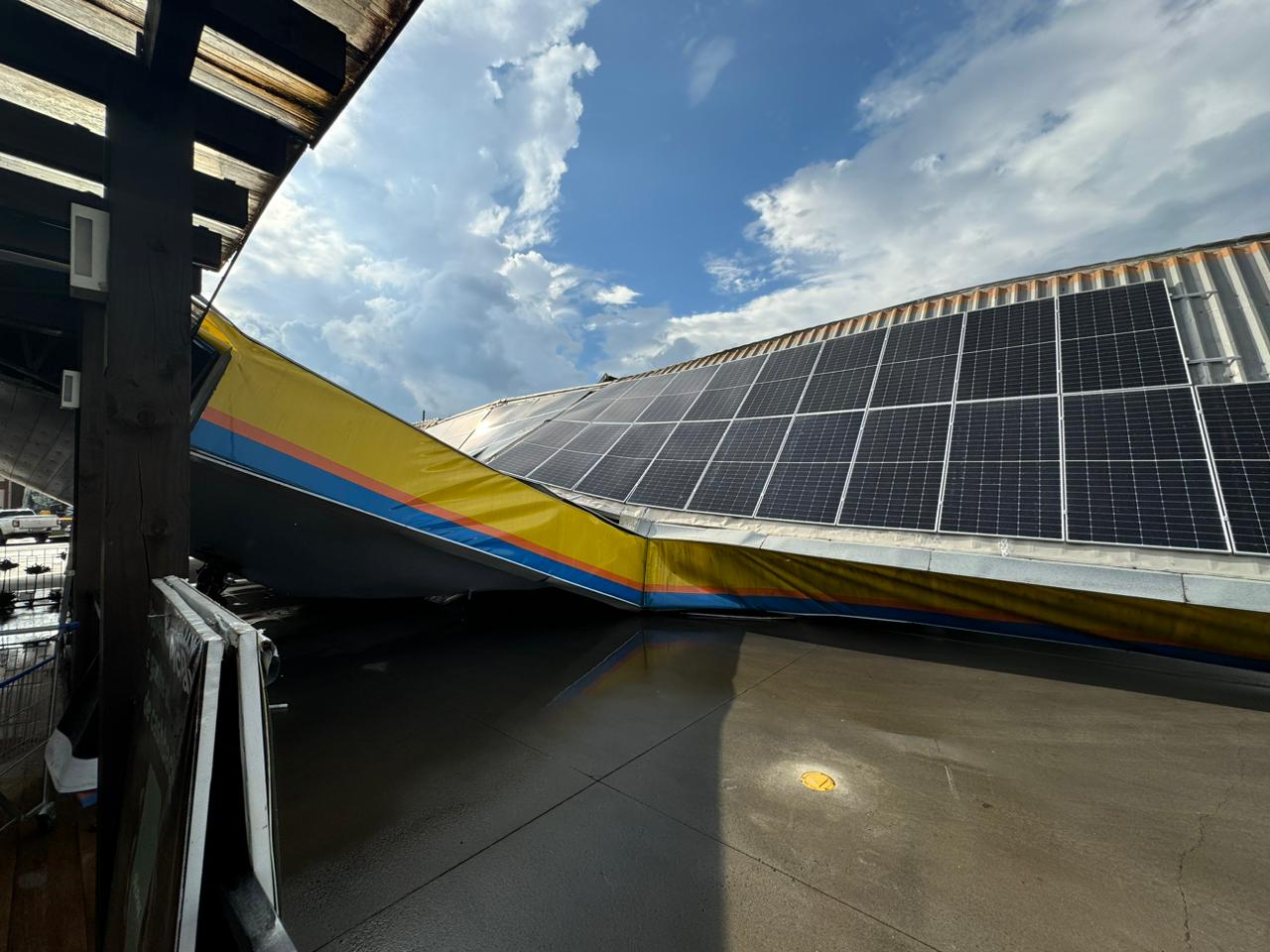 A cobertura de um posto de combustível caiu na tarde desta terça-feira (4) na avenida Universitária, no bairro São Sebastião, em Criciúma.