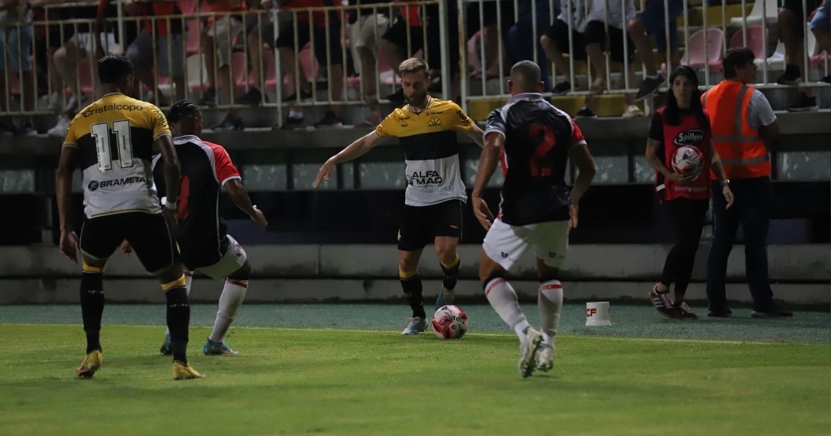 Em seguida, Jhonata Robert recebeu o passe de Diego Gonçalves, mas perdeu o equilíbrio na grande área e não conseguiu concluir a jogada.