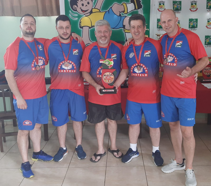 A equipe bronze da 28ª Taça Santa Catarina de Bocha é formada por: Denilson Fernandes; Delcio Skowronski; Joelson Petroski Meurer; Lucas Dumke; Lucas e Quinhonez Fenalti.