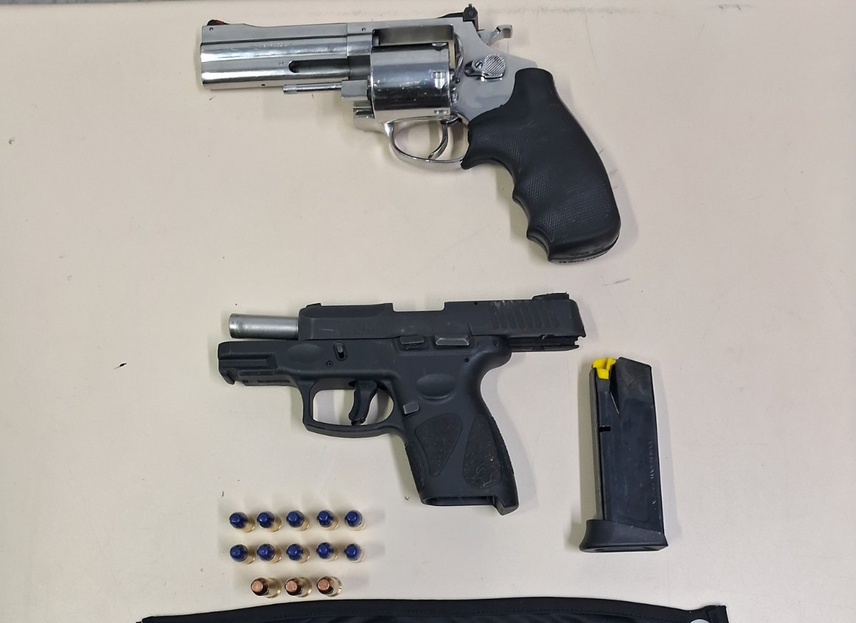 Conforme relato da PM, ele estava com duas armas, sendo uma pistola calibre nove milímetros e um revólver calibre 38 numerado, ambos estavam municiados e carregados. Ele relatou aos policiais que as armas não eram suas, e que pegou apenas para fazer a limpeza. Ele foi preso e encaminhado à Central de Flagrantes.
