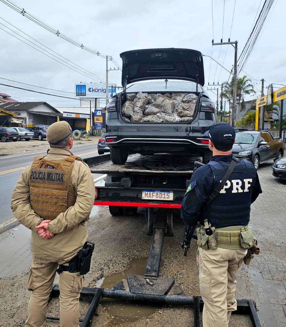 Já em Garopaba, em uma outra operação, o motorista de um veículo VW Virtus não acatou a ordem de parada e também empreendeu fuga. Após o acompanhamento, o veículo foi abordado e, na busca veicular, os policiais apreenderam cerca de 47 kg de skunk já embalados. Dois homens foram presos na ação.