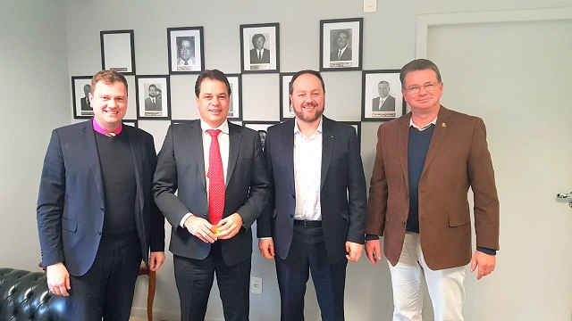 O deputado estadual Rodrigo Minotto (PDT), coordenador na Assembleia Legislativa da Frente Parlamentar em defesa das instituições de ensino superior legalmente habilitadas a funcionar em Santa Catarina, esteve reunido na quarta-feira, 21, com o superintendente comercial do Banco do Brasil no Estado, Alessandro Zago, e o secretário executivo do Sistema Acafe, Paulo Ivo.