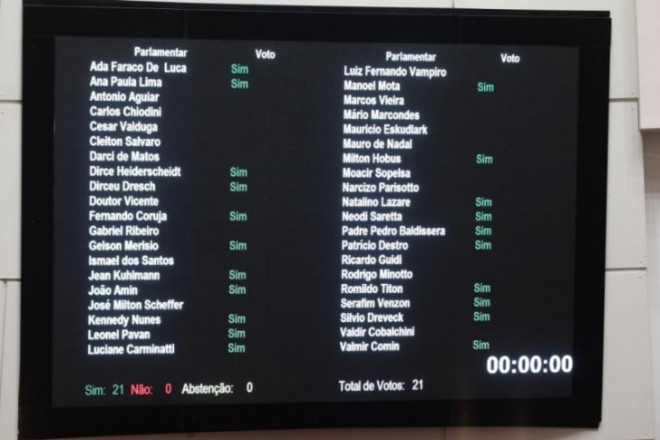 Por unanimidade entre os deputados presentes (21 votos dos 40), a Assembleia Legislativa de Santa Catarina aprovou em turno único, na sessão ordinária de ontem, o fim do pagamento de despesas médicas para parlamentares. A medida consta no Projeto de Resolução 3/2018, que terá sua redação final votada na sessão de hoje, para entrar em vigor.