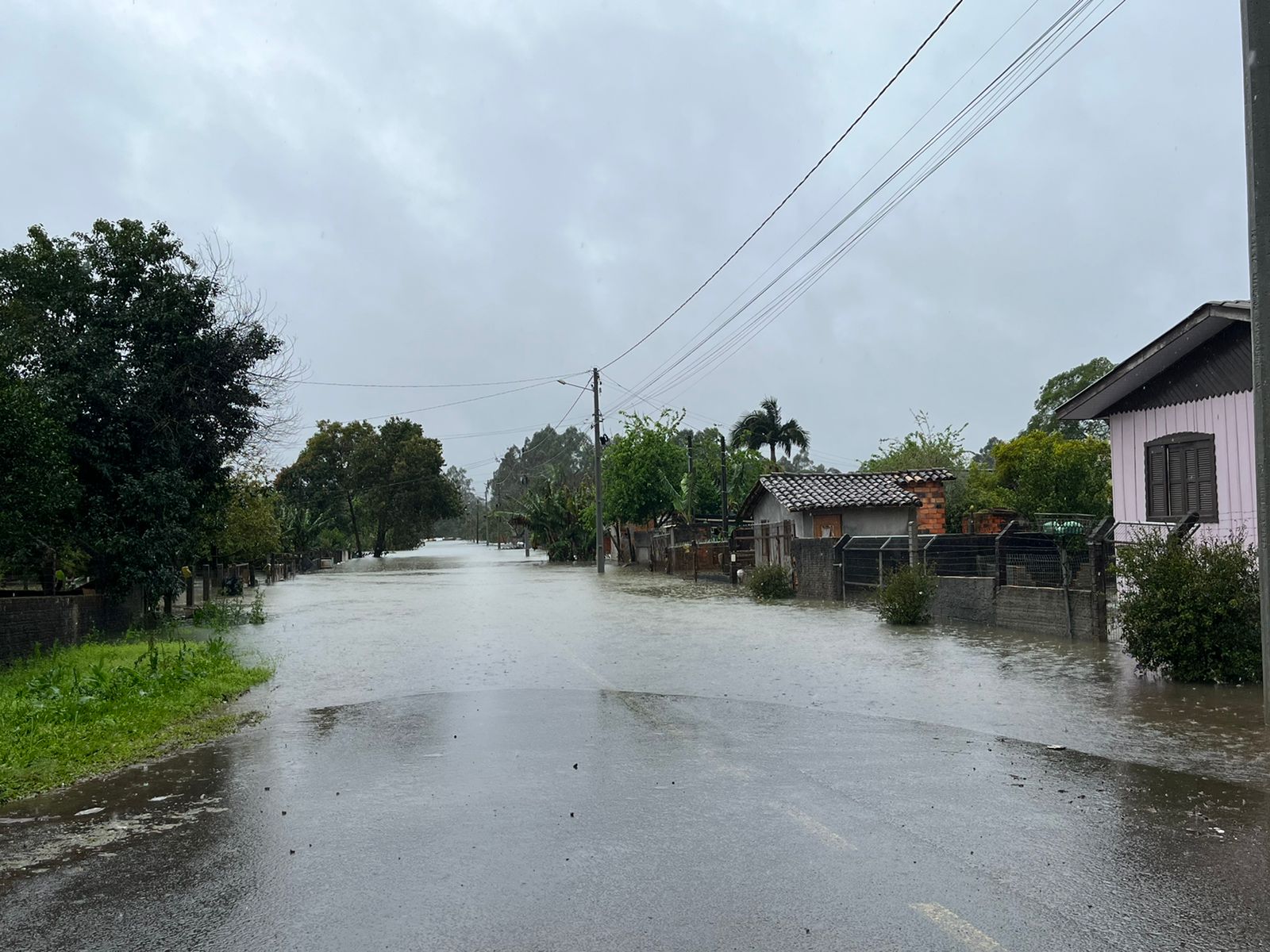 Há, também, ruas alagadas nos bairros Vila Franca e Ouro Negro e em comunidades do interior, como Santa Terezinha com registros de pontos de alagamentos sobre a pista. A Sanga do Café está com alguns pontos isolados.