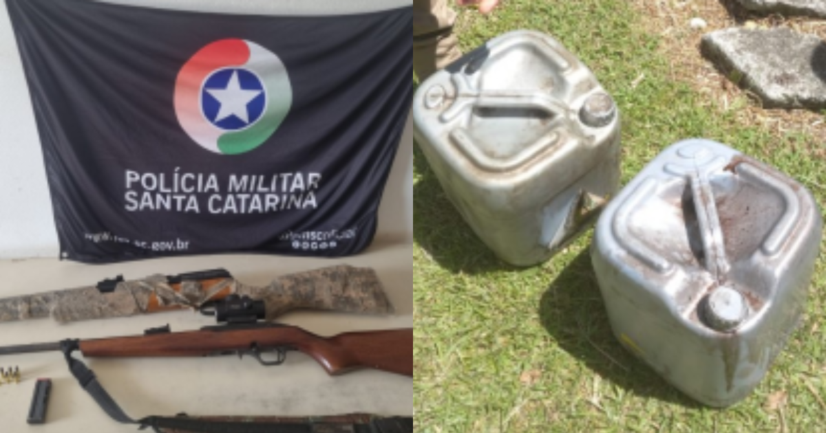 Ao tentar fugir, a mulher foi agredida pelo suspeito e sofreu uma lesão em uma das pernas. Após o ataque, o homem foi localizado na casa da mãe. No local, a polícia encontrou os galões utilizados na ação e duas espingardas calibre .22.