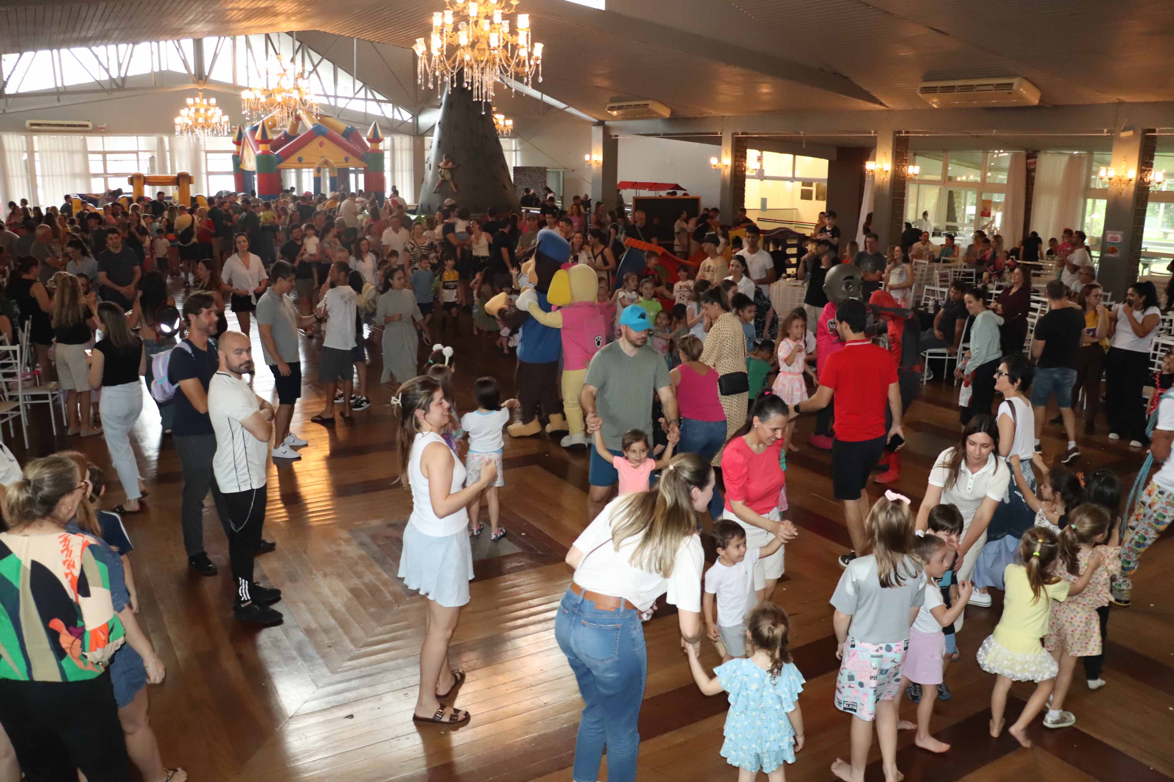 A Sociedade Recreativa Mampituba celebrou o Dia das Crianças em grande estilo neste domingo (12). A tradicional festa, realizada no Salão Social Abílio Paulo, reuniu mais de 600 pessoas entre associados, familiares e convidados, em uma tarde repleta de alegria, brincadeiras e integração.