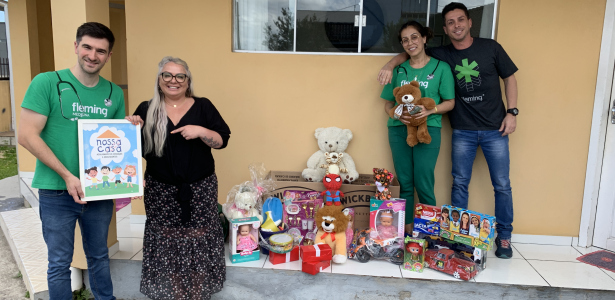 As doações dos 360 brinquedos recebidas pelo Fleming no aulão pré-Enem estão sendo entregues. Na última última semana de novembro, representantes da instituição - que iniciará as operações em Criciúma em fevereiro de 2023 com pré-vestibular especializado em preparação para aprovações em Medicina e Ensino Médio - estiveram na associação beneficente Nossa Casa, que acolhe crianças e adolescentes vítimas de violência.