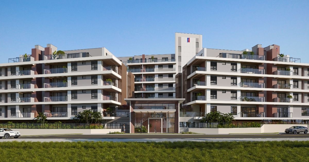 Os diferenciais também reforçam a proposta de um projeto atual e completo. O residencial conta com hall de entrada com pé-direito duplo, porte-cochère, sistema de segurança com monitoramento por câmeras 24 horas, acesso digital com reconhecimento facial, gerador de energia para áreas comuns e infraestrutura para carregamento de veículos elétricos. A qualidade construtiva é complementada por manta acústica entre pavimentos, garantindo mais conforto no dia a dia.