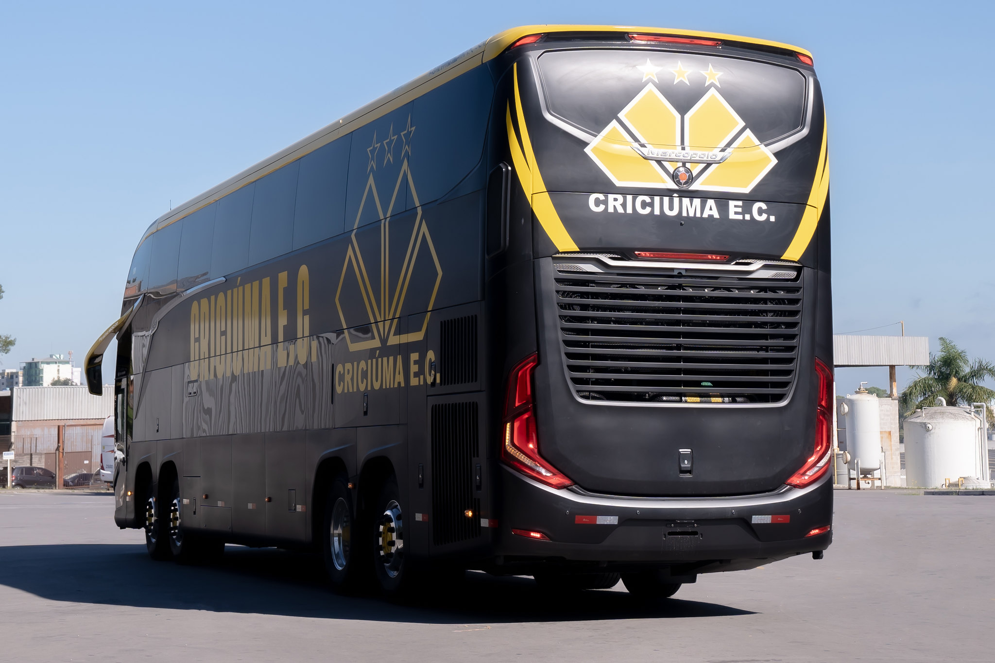 Este da foto acima é o novo ônibus do Criciúma, que chegou na tarde desta quinta-feira (8) à cidade. As imagens foram divulgadas pelo clube e pela fabricante Marcopolo nas redes sociais (veja outras abaixo). O Tigre pagou R$ 2 milhões pelo veículo, considerado de topo de linha e um dos mais modernos do futebol brasileiro.