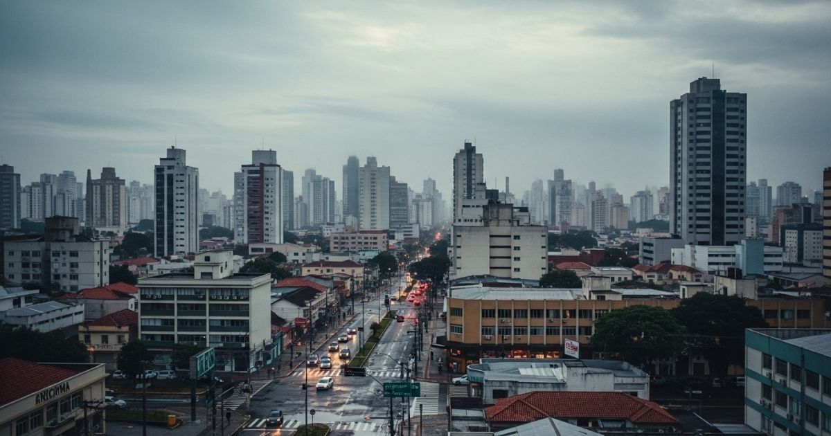 A frente fria avança lentamente por Santa Catarina, mantendo o céu encoberto e o tempo instável. Em Criciúma e cidades da região, o domingo deve começar com chuva já nas primeiras horas da manhã.