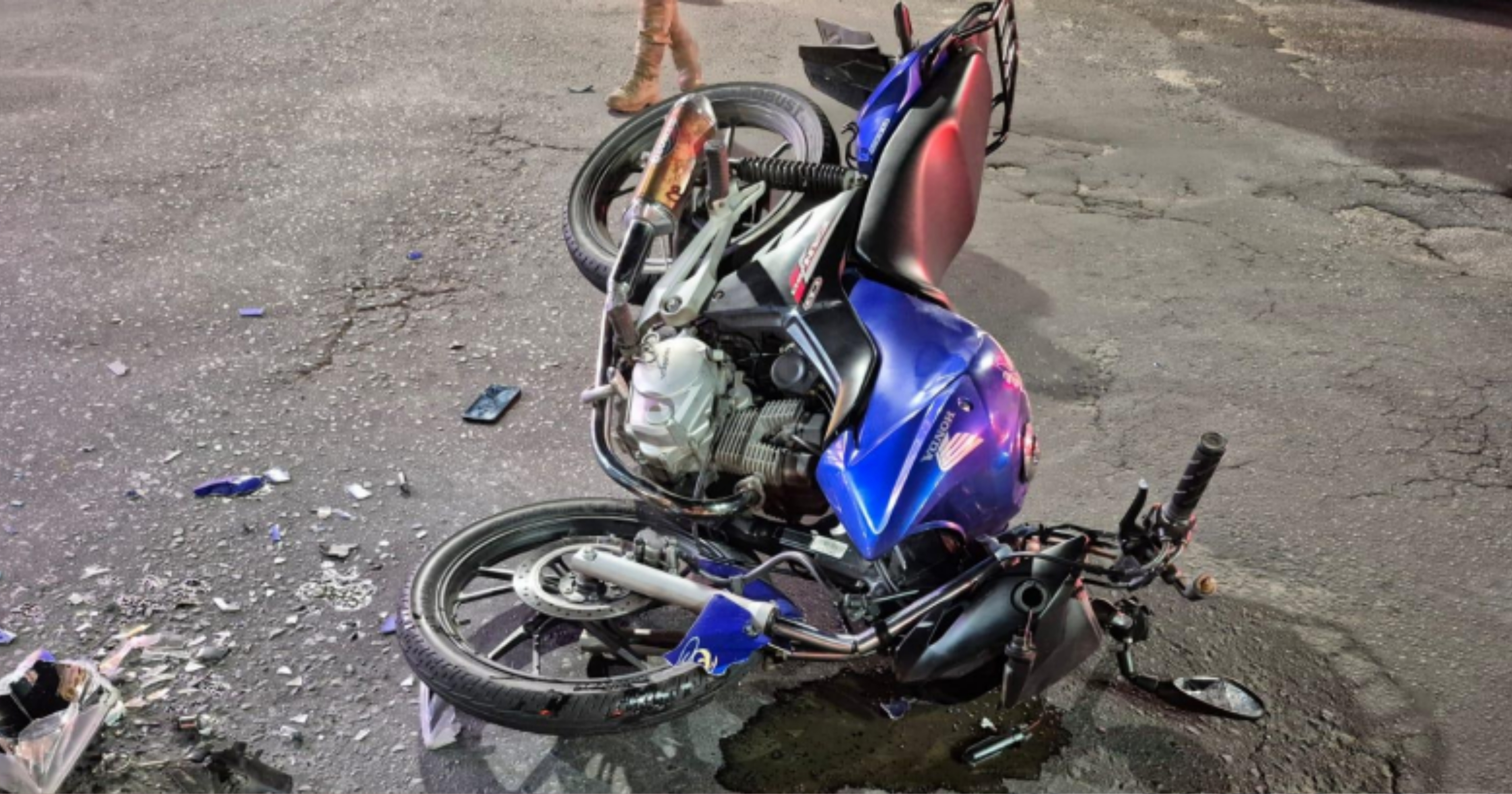 A perseguição terminou no cruzamento com a Avenida Sete de Setembro, quando o motociclista colidiu na lateral de um veículo Jeep Compass.