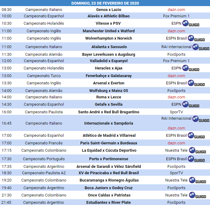 Confira os jogos deste domingo: