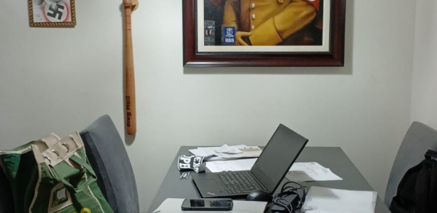 Durante as buscas, materiais de apologia ao nazismo, incluindo símbolos e objetos relacionados à ideologia extremista, foram apreendidos. Também foram encontradas armas brancas, como uma faca e um “soco inglês”.