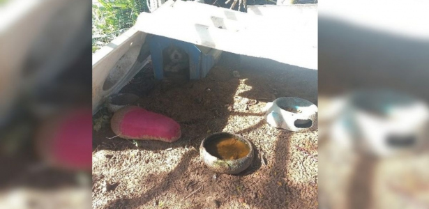 O cão adulto estava preso por uma corrente curta, praticamente sem mobilidade, sem água e sem comida, além de apresentar magreza acentuada. Já os filhotes estavam em um espaço inadequado, sem água limpa e com sinais de desnutrição.