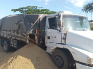 Um caminhoneiro foi encaminhado ao hospital após uma carreta Scania colidir na lateral de um caminhão Mercedes Benz. O acidente ocorreu na tarde desta sexta-feira (31) na rua Rômulo Pescado, no bairro São Cristóvão, em Turvo, por volta das 16h.