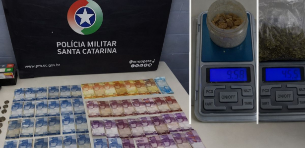 Com o suspeito, foram encontrados 4,55 gramas de maconha e 1,45 grama de cocaína, dividida em três porções, além de uma balança de precisão, um celular e R$ 501,25 em dinheiro. Em uma área de mata próxima, os policiais localizaram ainda 9,58 gramas de crack, que teriam sido descartadas durante a fuga, além de um objeto possivelmente utilizado em trocas por drogas.