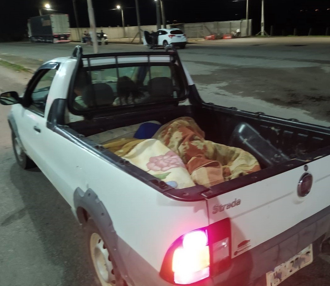 Policiais rodoviários federais flagraram na noite deste sábado (23), na BR-101 em Tubarão, dois homens sendo transportados no compartimento de carga de uma picape escondidos debaixo de cobertores.