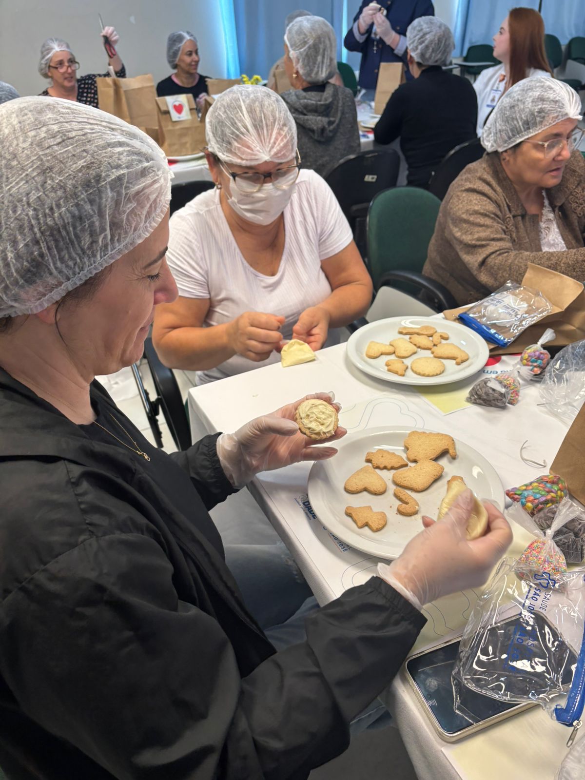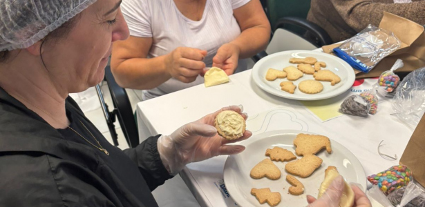 Enquanto decoravam as bolachas, as conversas fluíam naturalmente. Alguns dividiam histórias parecidas, outros trocavam palavras de apoio e riam juntos. O ambiente, que em outros dias é dominado pela preocupação, se transformou em um espaço de troca e humanidade.