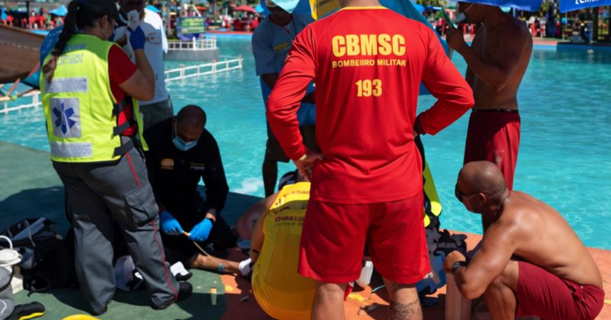 Quando os bombeiros chegaram no local, a idosa já estava fora da piscina, recebendo cuidados das guardiãs da piscina e dos socorristas do parque. Na sequência, guarda-vidas que atuam na praia do Morro dos Conventos também prestaram apoio.