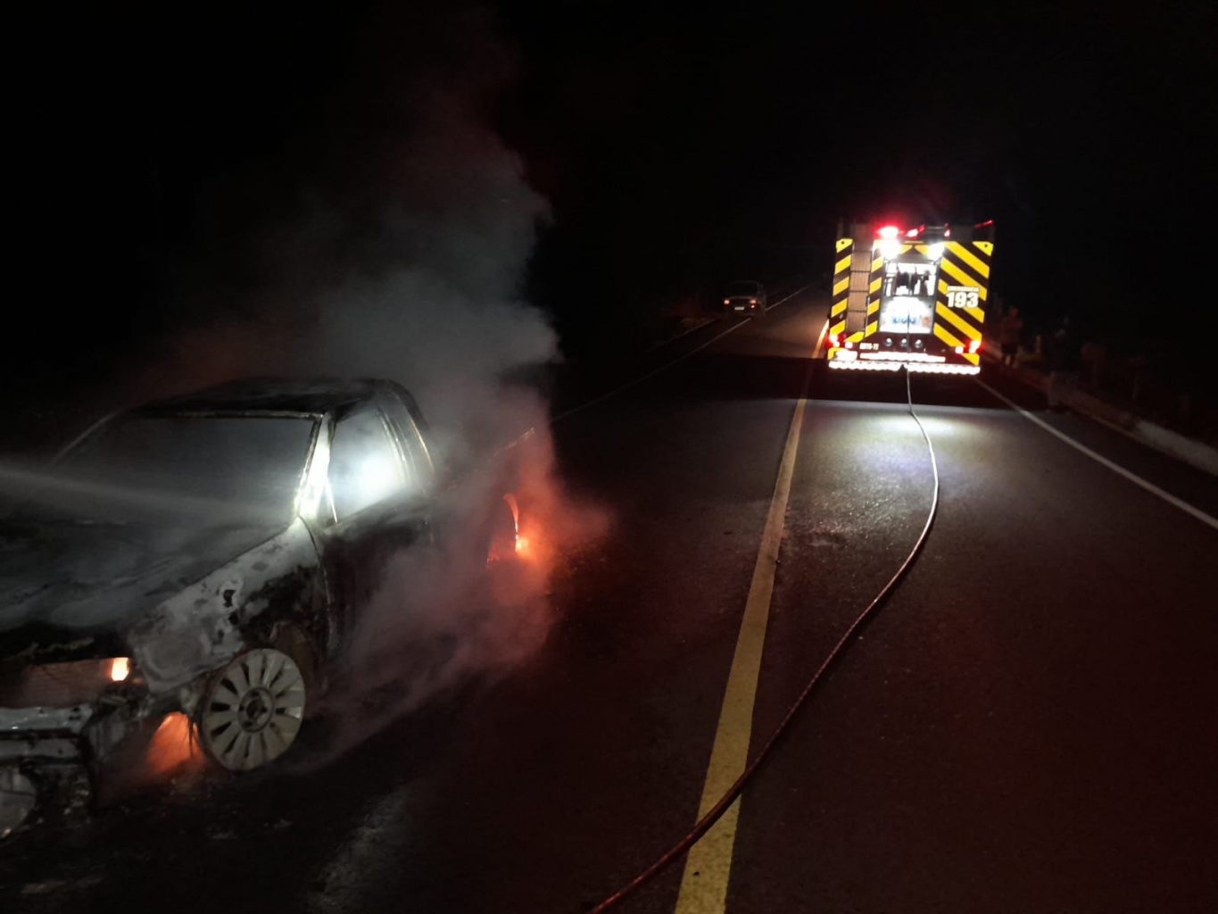 Um carro pegou fogo na noite dessa quarta-feira (5), por volta das 21h, no bairro Rio Vargedo, em Morro da Fumaça. Segundo o Corpo de Bombeiros ao chegar, encontraram o veículo completamente em chamas em um trecho de rodovia em área de serra.