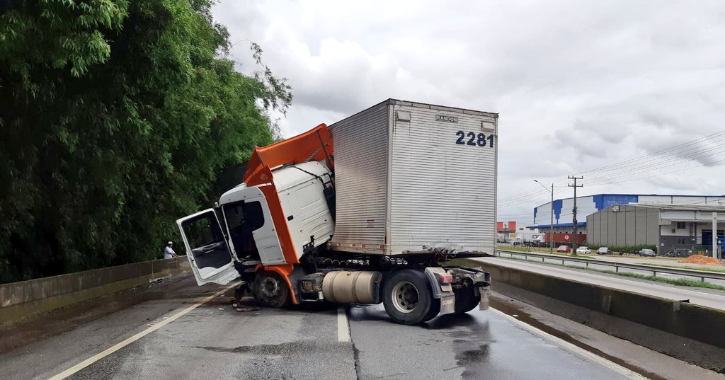 Um grave acidente de trânsito provocou a interdição total da BR-101, sentido Sul, em Itajaí, na tarde desta quarta-feira (21). Equipes da Arteris Litoral Sul - responsável pela administração do trecho -, trabalharam para desobstrução da via. Uma carreta envolvida na ocorrência foi retirada do local.