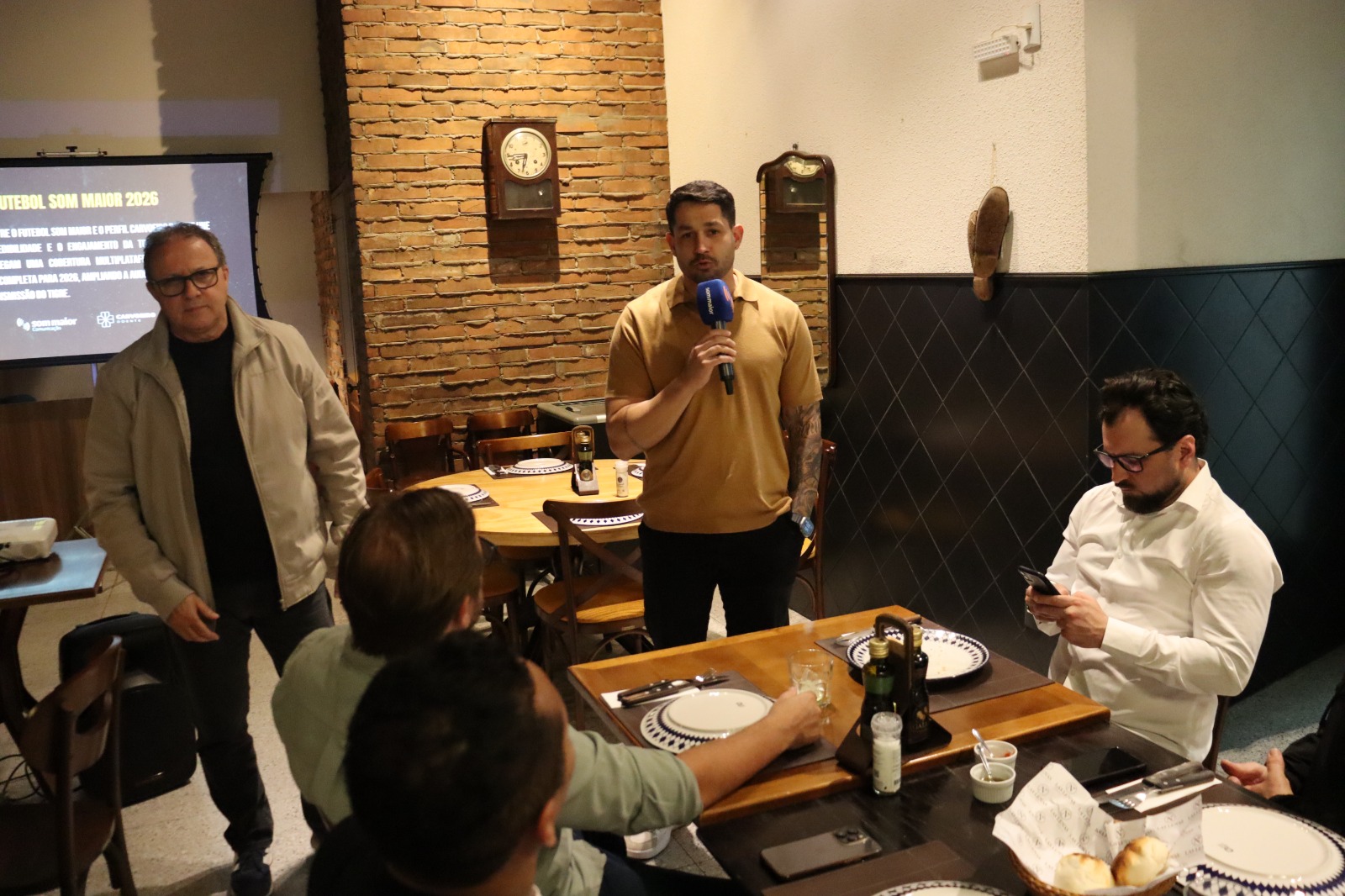 A parceria entre o Timaço da Som Maior e os patrocinadores foi o ponto central do jantar promovido na noite desta segunda-feira (24). O encontro, realizado em Criciúma, reuniu representantes das empresas apoiadoras, dirigentes e profissionais da imprensa, em uma ação voltada a fortalecer a relação entre os setores que acompanham e sustentam o projeto esportivo.