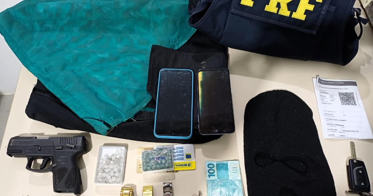 No interior da picape, os agentes encontraram diversos objetos levados da residência alvo do roubo. Entre eles estavam uma balaclava, cinco relógios, joias, telefones celulares, pedras semipreciosas e documentos pertencentes às vítimas.