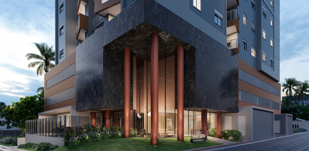 A infraestrutura contempla hall de entrada com pé-direito duplo, salão de festas com deck externo, espaço fitness com terraço, dois elevadores e acesso exclusivo para banhistas.