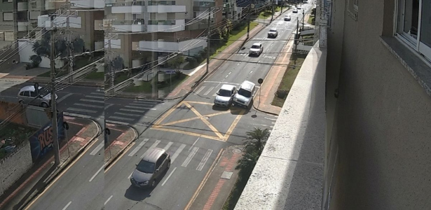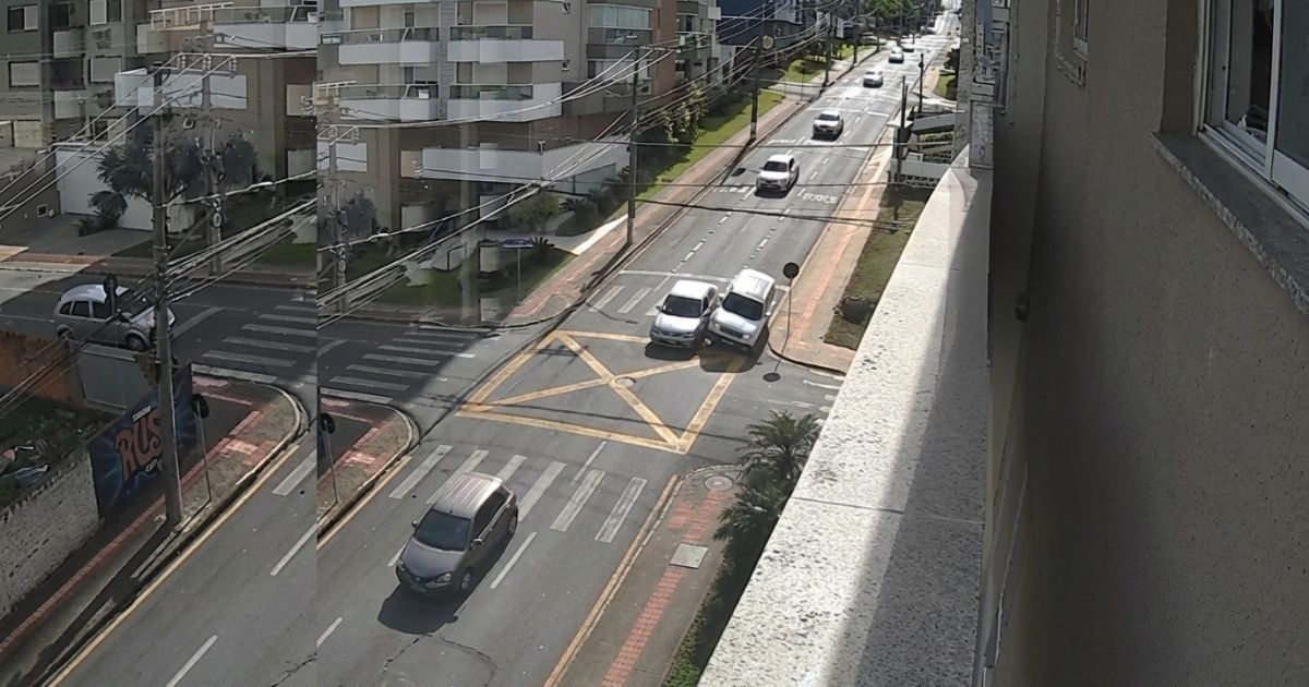Nas imagens, um carro que trafegava pela pista do meio corta a frente de outro veículo que vinha pela faixa da esquerda. Com a manobra, ocorre a batida, em um tipo de situação que já se repete com frequência na via.