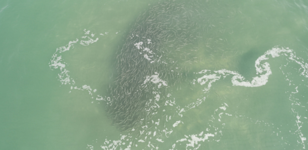 Pelo segundo dia consecutivo, cardumes de tainha foram flagrados na praia do Farol de Santa Marta, em Laguna. No vídeo de Josimar Santos, ele afirma que milhares de peixes nadavam juntos no litoral catarinense.