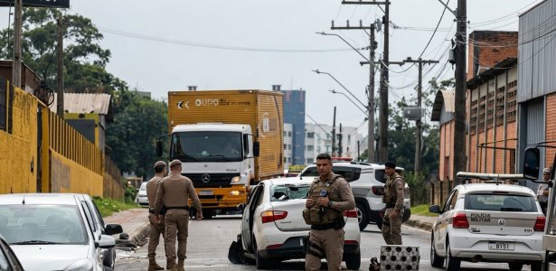 Conforme informações repassadas pela Polícia Militar, um Fiat Siena em fuga colidiu com outro carro próximo de uma agência bancária. Durante a ação, um Fox com duas mulheres foi atingido por disparos, mas ninguém ficou ferido.