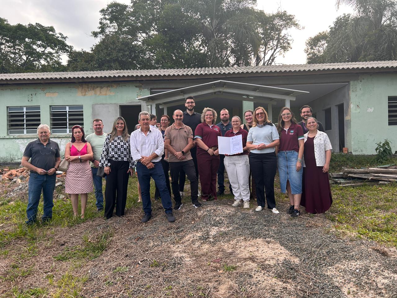 As obras vão ser retomadas na Escola Municipal Alda Brognoli Marcon, localizada no Rio Caeté, em Urussanga. A prefeita Stela de Agostin Talamini e o vice-prefeito Renato Bez Fontana, acompanhados de autoridades, equipe escolar e da comunidade, entregaram a ordem de serviço nesta sexta-feira, dia 24, para a empresa Mariani Construtora iniciar os trabalhos de reforma e ampliação na unidade escolar.