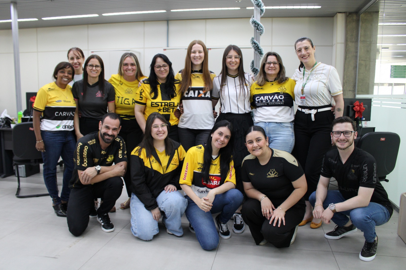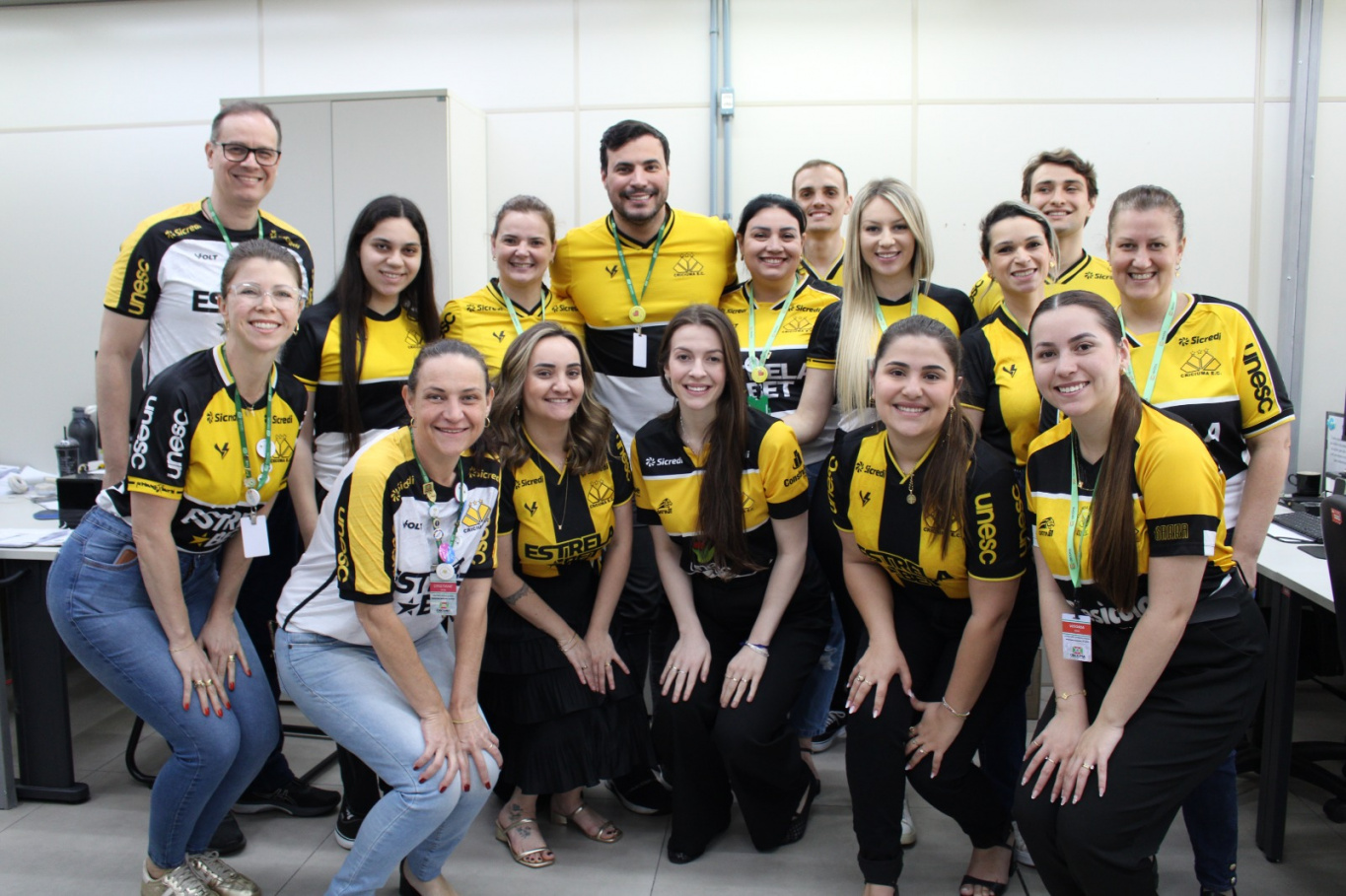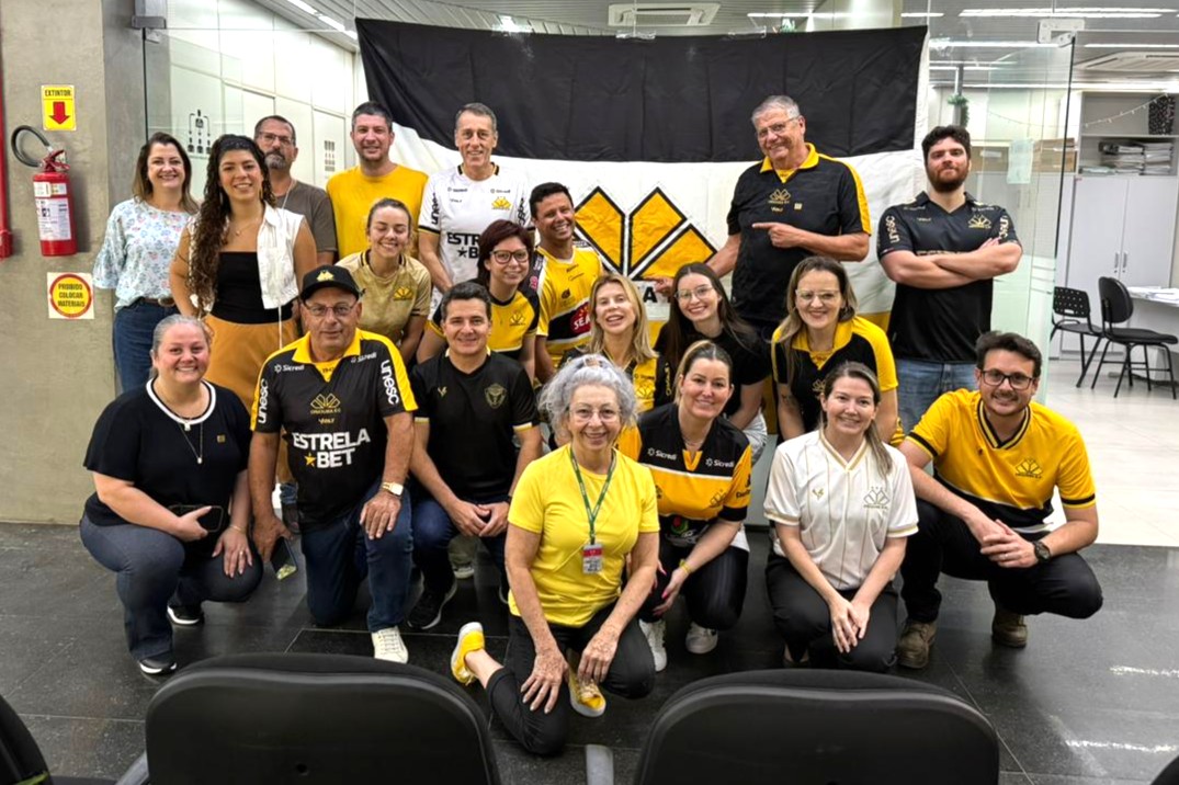 A cidade está em clima de torcida e apoio ao Criciúma Esporte Clube. Nesta sexta-feira (14), o Paço Municipal Marcos Rovaris se uniu em uma mobilização especial pelo Tigre, que enfrenta o Botafogo-SP neste domingo (16), em um jogo decisivo para garantir vaga no G4 e avançar rumo ao acesso à Série A. Para participar deste momento de incentivo e vibração, os servidores municipais chegaram ao trabalho vestidos com a camisa do clube e com as cores preto, amarelo e branco.