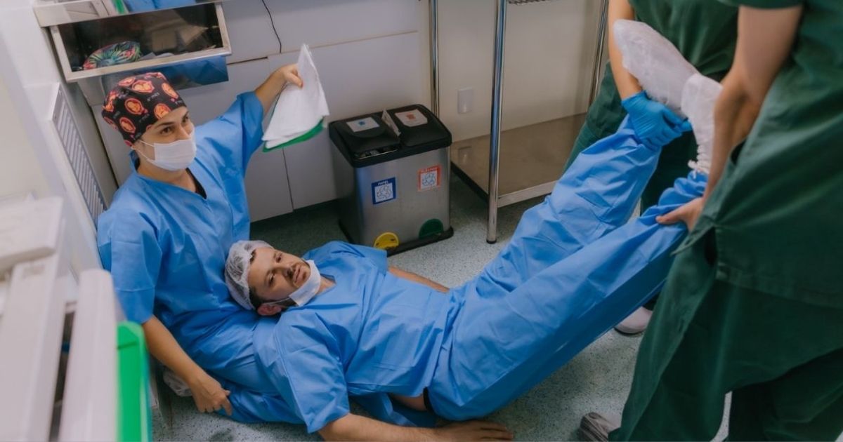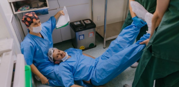 A equipe médica que estava na sala agiu rapidamente para prestar atendimento ao pai, enquanto o procedimento seguiu normalmente com a mãe.