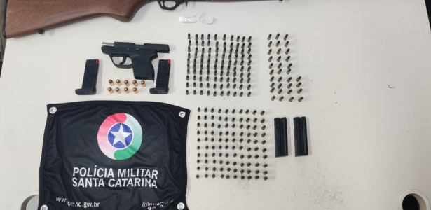 Um homem foi preso com um rifle calibre .22, uma pistola calibre 380 e aproximadamente 244 munições no bairro Vila Floresta, em Criciúma, no fim da tarde deste domingo (25). A ocorrência foi registrada por volta das 18h, entre a Avenida Luiz Lazzarin e a Rua João Pirola. Com o abordado, que dirigia um veículo na localidade, também foram encontradas duas buchas de cocaína.