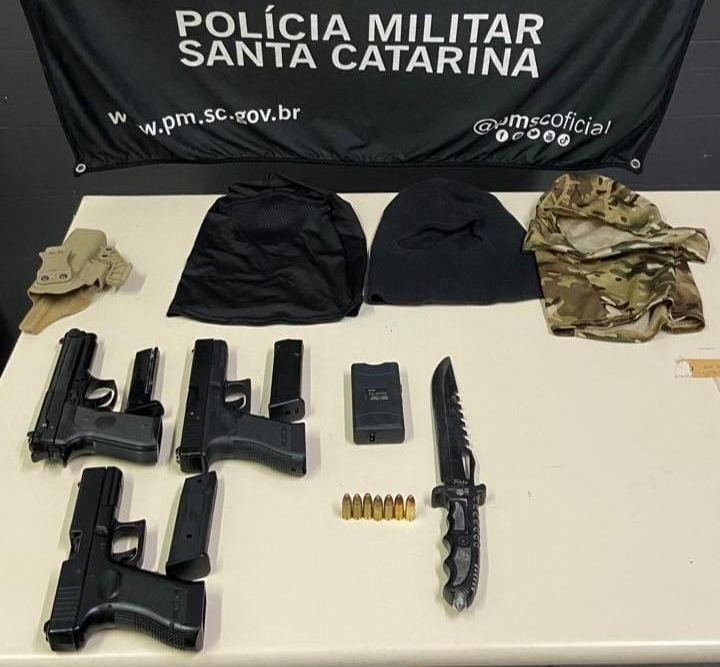 A Polícia Militar (PM) prendeu três homens e apreendeu três simulacros de pistola, sete munições de nove milímetros e duas munições nove milímetros. A ocorrência aconteceu na madrugada desta sexta-feira (1), em Criciúma.