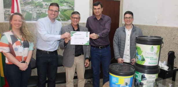 A Palma Sul Embalagens é a primeira empresa de Morro da Fumaça a receber o Selo Verde. O proprietário Antônio Augusto de Assis Batista esteve nesta segunda-feira, 31, no Paço Municipal, para receber o certificado. "A nossa ideia é aproveitar esse selo para o marketing, podendo até divulgá-lo na nota fiscal. Queremos que o nosso cliente saiba que estamos comprometidos com a parte sustentável, alavancar parcerias e incrementar as vendas", destaca.