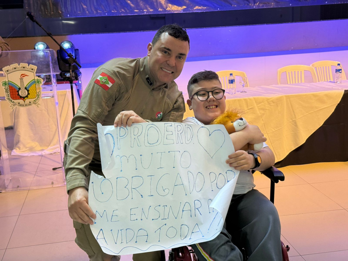 "O aluno leva o conhecimento para casa, conversa com os pais, replica o que aprendeu. Esse é o triângulo do Proerd: família, escola e Polícia Militar. Quando esses pilares se unem, formamos jovens mais conscientes, responsáveis e preparados para uma sociedade mais saudável e justa", pontuou.