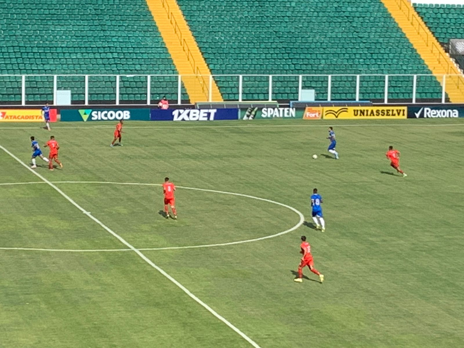 O primeiro tempo do Próspera foi muito abaixo. Desencontrado em campo, não conseguiu criar chances. O Barra tirou proveito e abriu o placar aos 23 minutos com Felipe Baiano.