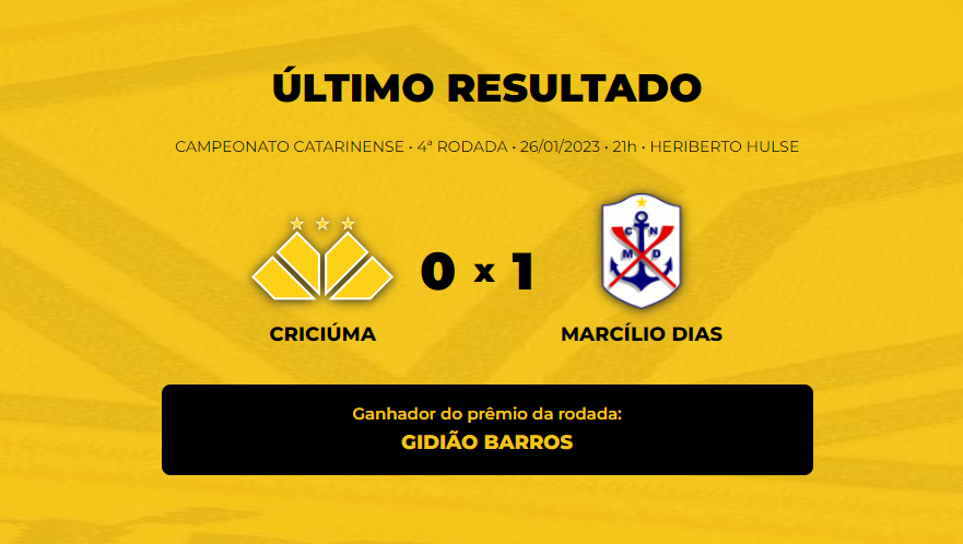 Tem novidade no Bolão do Bistek! Agora, os torcedores podem acompanhar os seus históricos de palpites na temporada do Criciúma. Para isso, devem criar um login e senha para acessar o site. Também há um ranking para os participantes e, a cada rodada, o vencedor levará um prêmio especial disponibilizado pelo Bistek Supermercados. O palpite certo vale um ponto e, ao fim do campeonato, o primeiro colocado também será premiado.