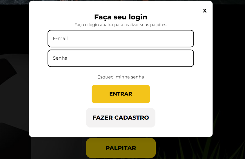 Para poder participar, primeiramente você deve efetuar seu cadastro. Após a conclusão, você já pode fazer seu palpite. Um e-mail de confirmação será enviado a você assim que o palpite for concluído. Lembramos que sua aposta é totalmente gratuita e você ainda pode ganhar diversos prêmios.