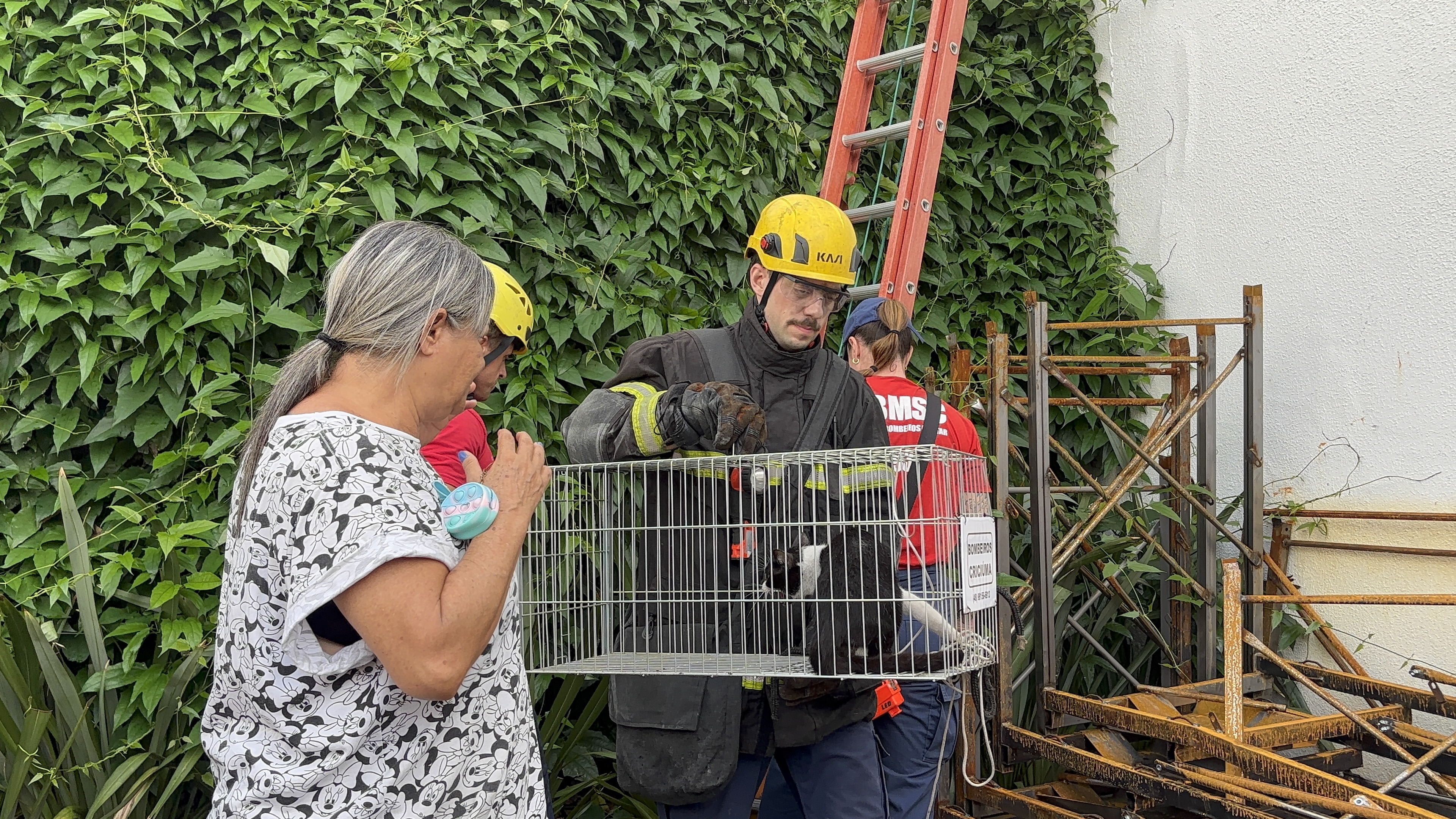 Um gato adulto foi resgatado na manhã desta terça-feira (7), após cair de uma janela com cerca de três metros de altura em um prédio da região central de Criciúma. O caso foi registrado após uma moradora acionar o Corpo de Bombeiros (CBM).