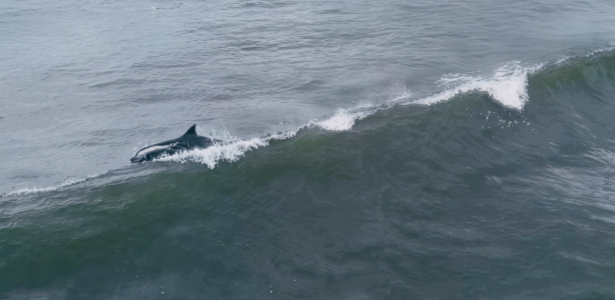 Um grupo de golfinhos chamou atenção em Laguna por ‘surfarem’ na praia do Farol de Santa Marta. Nas redes sociais, um vídeo mostra os animais saltando entre ondas – o que ajudou a cena a repercutir.