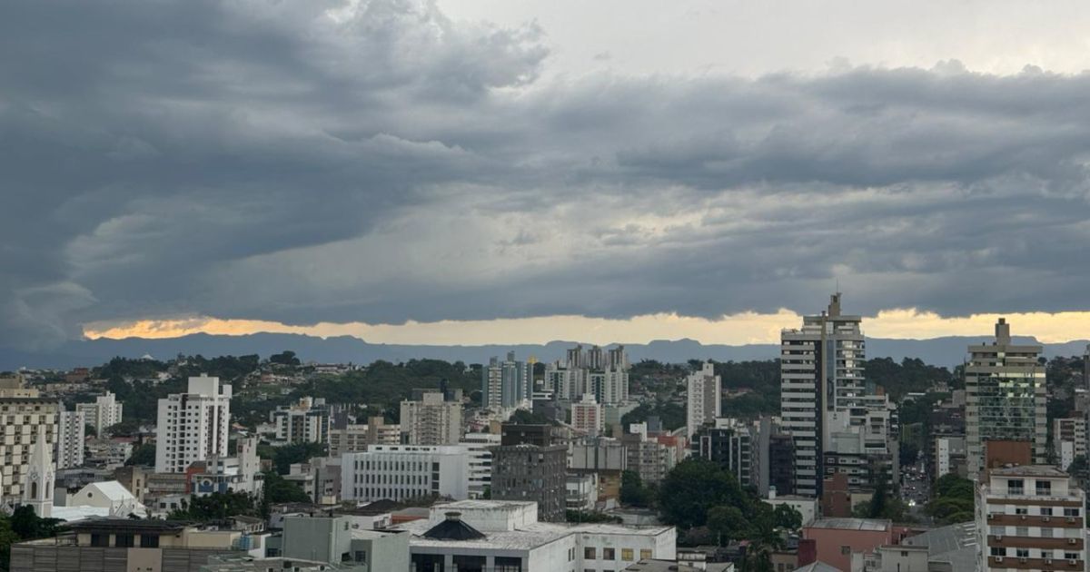O calor, a umidade e uma área de baixa pressão com ventos mais intensos favorecem a formação de temporais acompanhados de raios, granizo, rajadas de vento e chuva pontualmente intensa em parte dos Planaltos, Vale do Itajaí e Litoral.