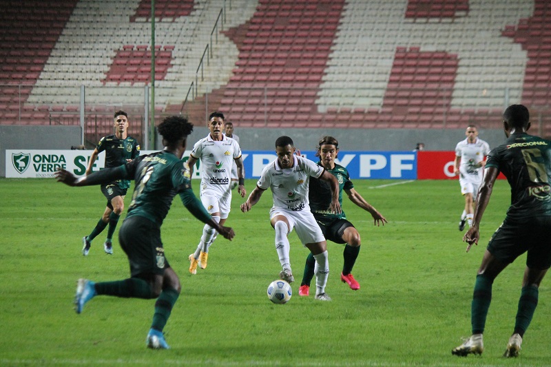 Depois do susto, o Tigre amenizou as investidas do América e tentou escapadas esporádicas ao ataque, especialmente com passes do Dudu Figueiredo. Veio do próprio meia a melhor chance de gol do time na primeira etapa.