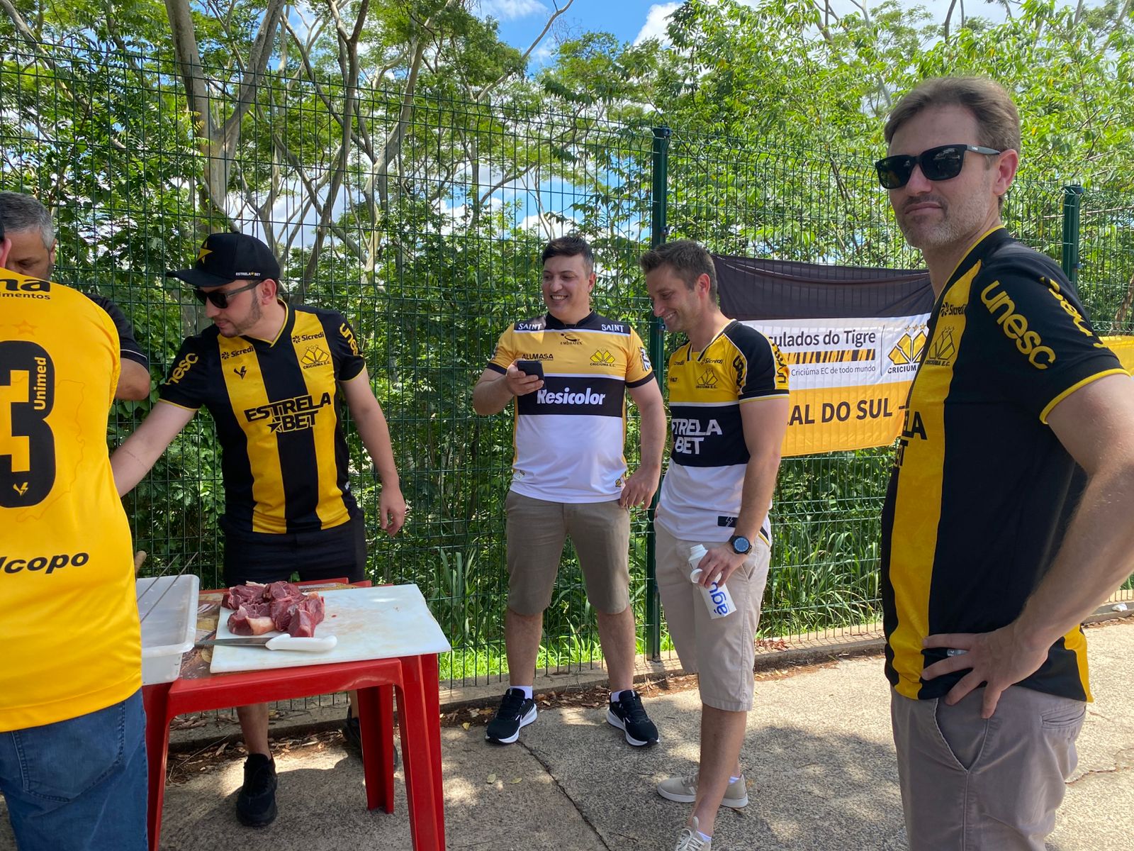 Responsável por articular a abertura do bar, Lucas explicou como surgiu a ideia. “A torcida começou a se reunir no aeroporto. Criamos um grupo e eu já tinha a intenção de organizar um pré-jogo. Quando cheguei em Cuiabá, procurei um local perto da Arena Pantanal. Conversamos com os proprietários e eles abriram só para a torcida do Criciúma”, relatou.