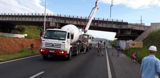 No fim de janeiro, o mesmo trecho foi interditado para a instalação de vigas de sustentação. Desta vez, será feita a colocação da base de concretagem. No sentido Criciúma/BR-101, o trânsito flui normalmente.