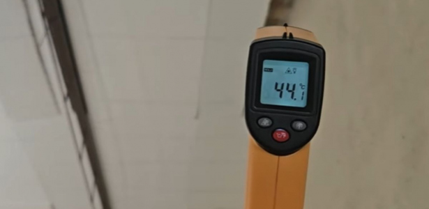 O teste prático chama atenção pelos números. Em uma medição direta feita com termômetro infravermelho, a telha de PVC sem isolamento chegou a 44 °C. Já a superfície com isopor instalado registrou apenas 27 °C, uma diferença de 17°C.