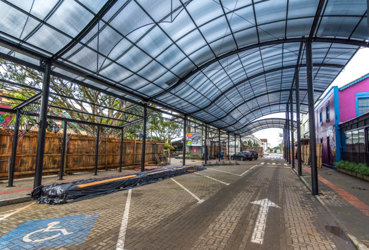 "A Rua Coberta sem dúvida vai atender a necessidade do município durante a festa e fora da festa, porque ela está dividida, fica na Praça da Chaminé e também no Centro da cidade, na Praça Humberto Bortoluzzi. Vai ajudar a embelezar a cidade e atrair turistas", define o prefeito Rogério Frigo. Acompanhando a cobertura da rua, que contou com instalação de sapatas e estruturas metálicas, foi feita a repavimentação da rua. A estrutura coberta é de policarbonato transparente, filtrando parte da luz do sol.