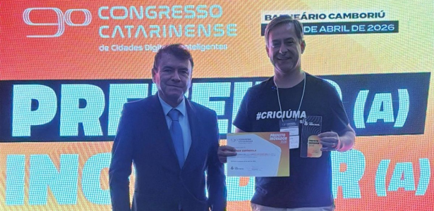 O prefeito de Criciúma, Vagner Espindola, foi reconhecido, na tarde desta quinta-feira (9), com o título de Prefeito Inovador 2026. A entrega da premiação ocorreu no Expocentro de Balneário Camboriú, durante o 9º Congresso Catarinense de Cidades Digitais e Inteligentes. O evento é organizado pela Rede Cidade Digital (RCD) e conta com o apoio da Federação Catarinense de Municípios (Fecam), assim como de diversas associações regionais de municípios.